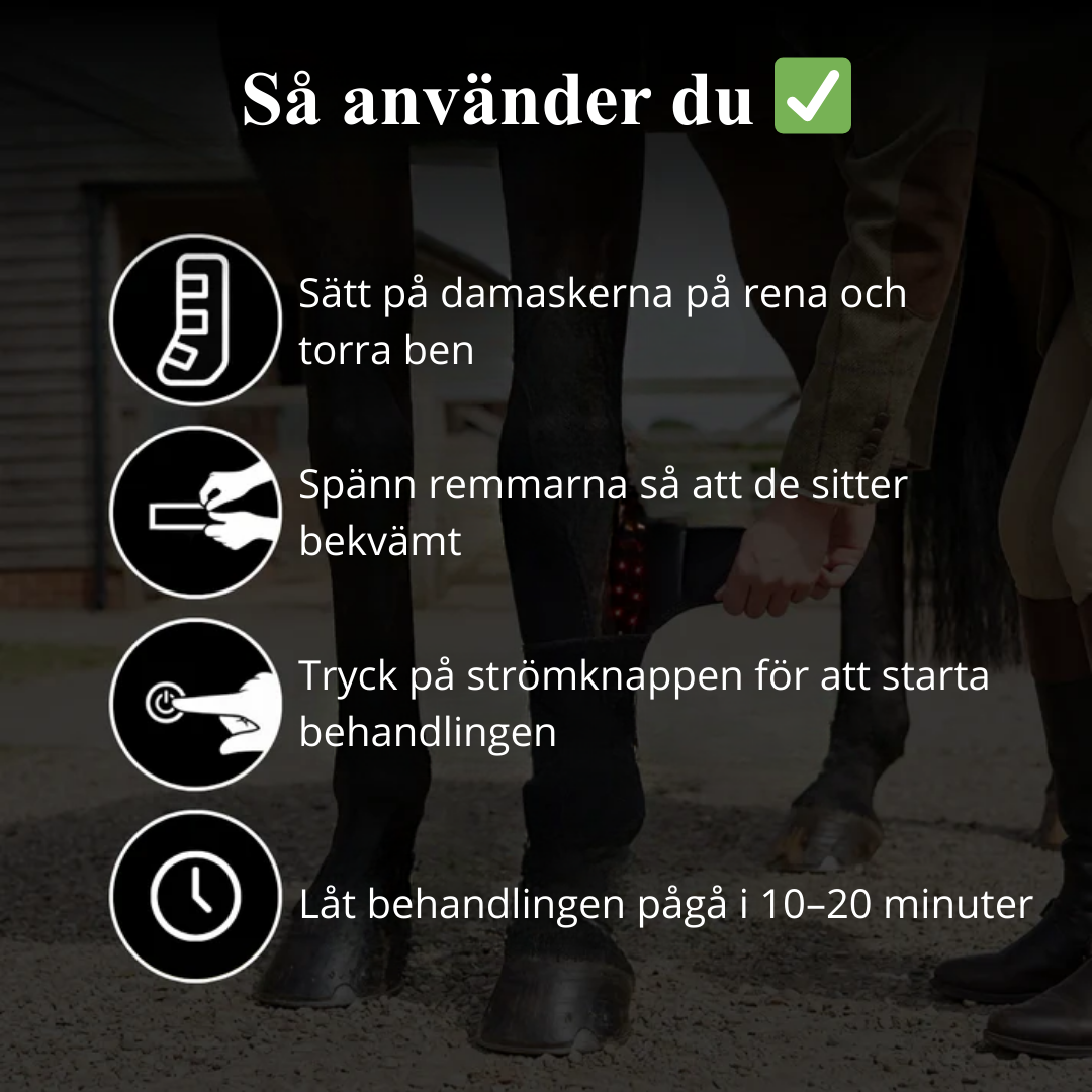 Efter ridning: minskar svullnad, lindrar belastning och påskyndar återhämtningen.